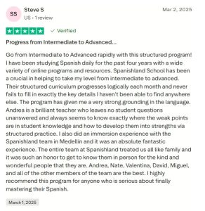 Spanishland School es un programa excelente. Es exactamente lo que yo he deseado por mucho tiempo. Para mí, es perfecto.