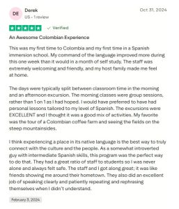 We were truly immersed in the Spanish language and the culture of Colombia each and every day.