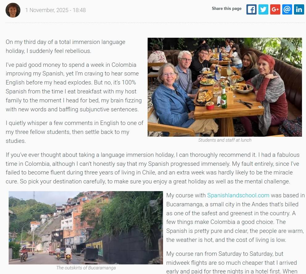 I've always wanted to improve my Spanish fluency and last week I fully immersed myself in Spanish language and Colombian culture with the wonderful www.SpanishlandSchool.com in Bucaramanga, Colombia.
